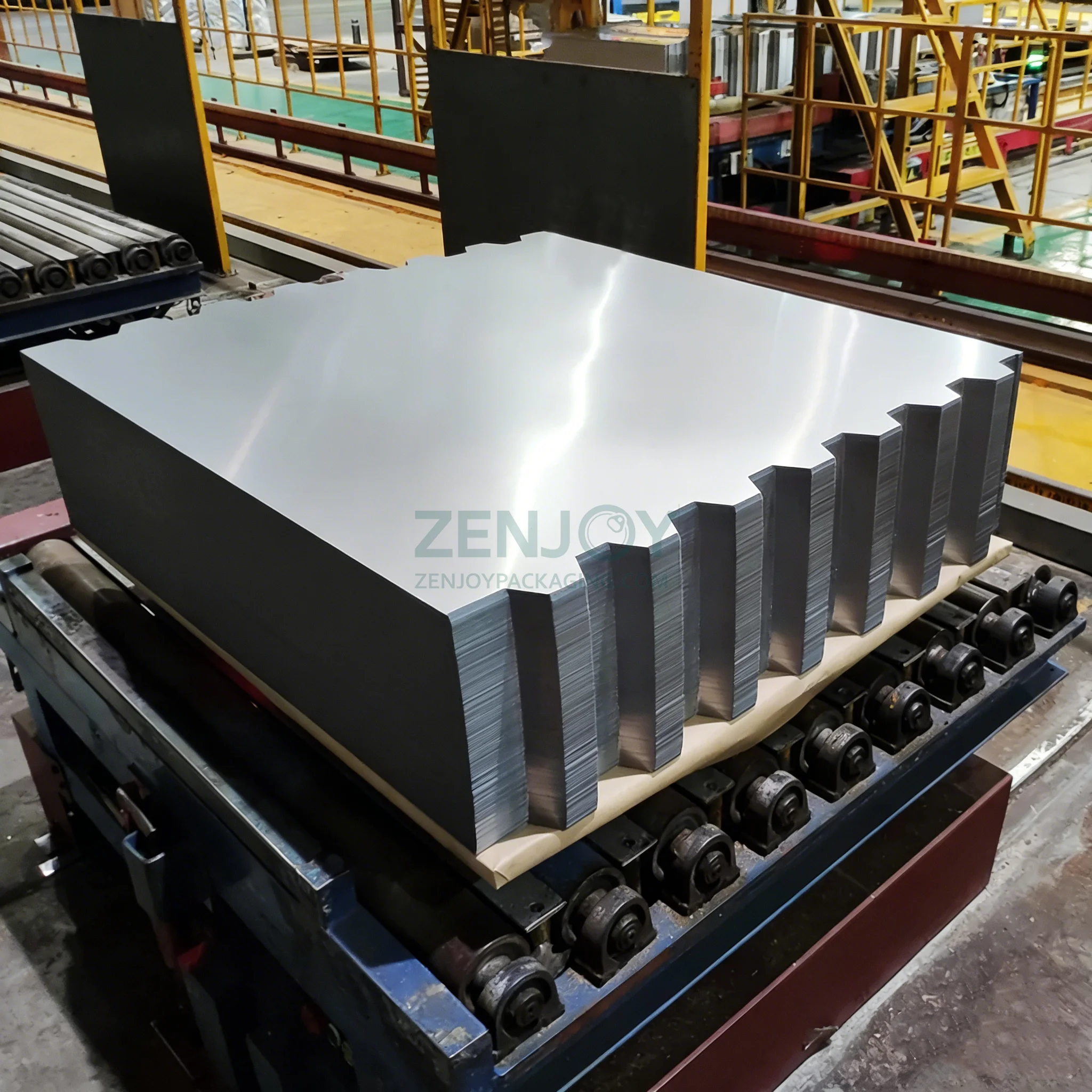 马口铁卷材分切板/镀锡薄钢板卷剪平板 指将大卷的马口铁(镀锡钢板)通过分切、开平工艺,裁切成指定尺寸的平板状马口铁,是罐头、五金、包装等行业的常用原料。 这类板材是马口铁深加工的基础形态,可根据需求分切成不同规格(尺寸按客户订单),后续可冲压、折弯成罐头罐身/易开盖、金属包装盒、五金配件等。